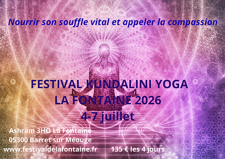 Cette année 2026, le Festival de Kundalini Yoga de la Fontaine aura lieu du vendredi 3 juillet 18h au mardi 7 juillet 17h30 !